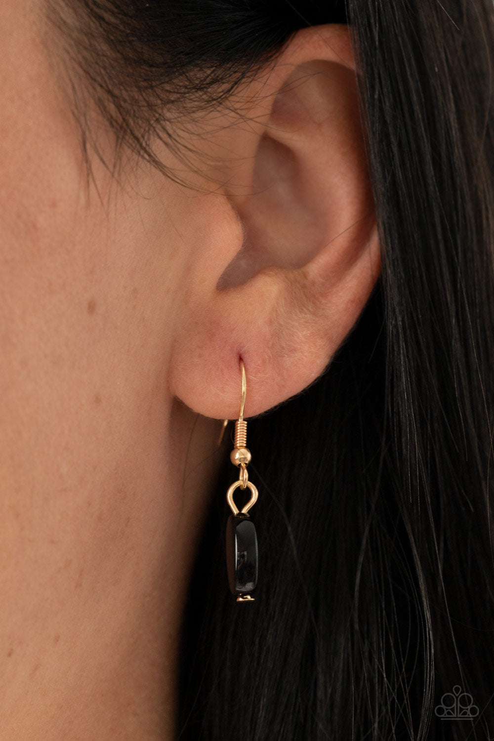 Featuring sleek gold fittings, rows of faceted black teardrop beads attach to the bottoms of polished black oval beads, creating a dangerously bold fringe below the collar. Features an adjustable clasp closure.