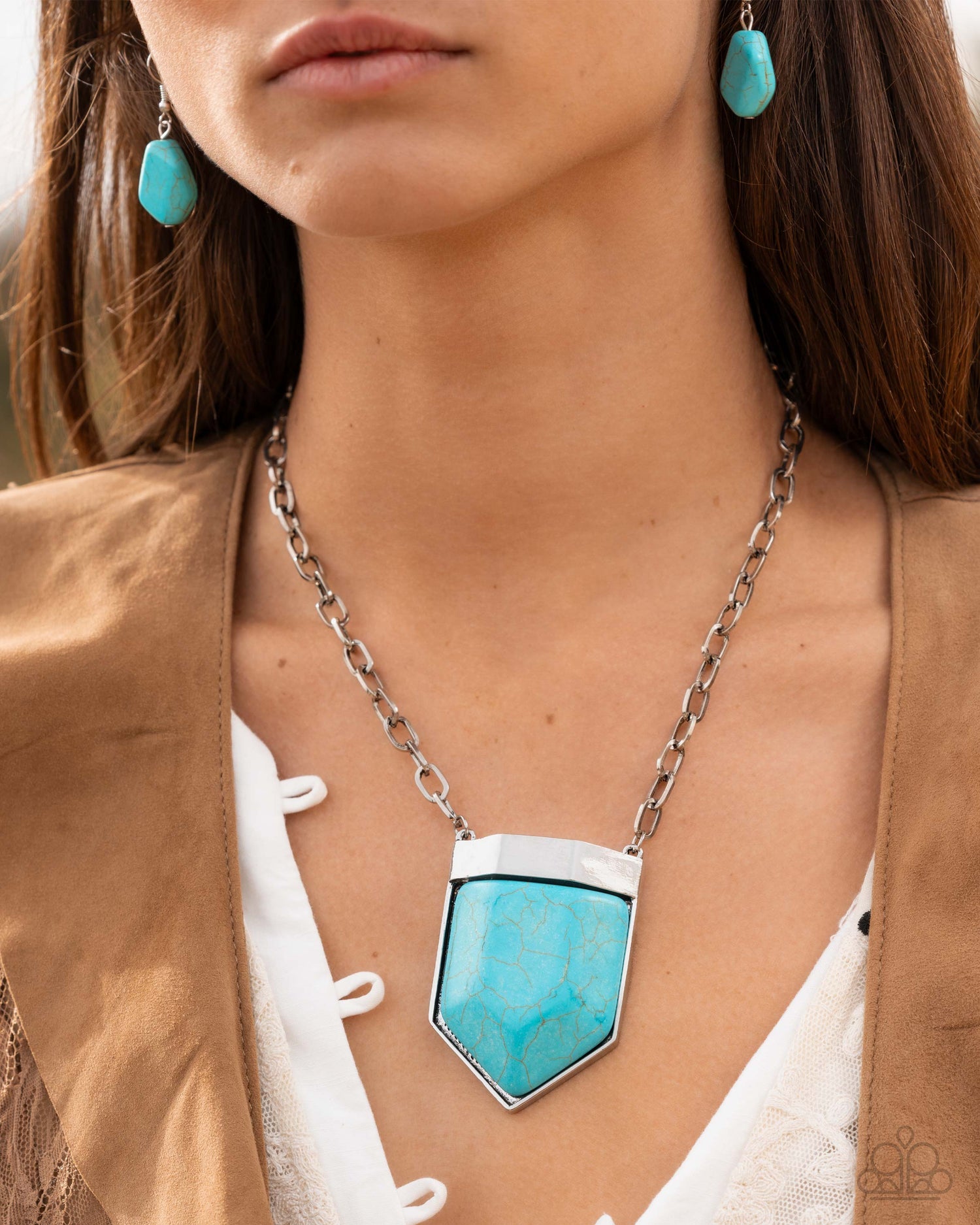 Pressed in an oversized hexagonal prismatic silver frame, a subtly textured half-turquoise stone glistens below the neckline from a glistening silver cable chain for a Southwestern-inspired statement. Features an adjustable clasp closure. As the stone elements in this piece are natural, some color variation is normal.