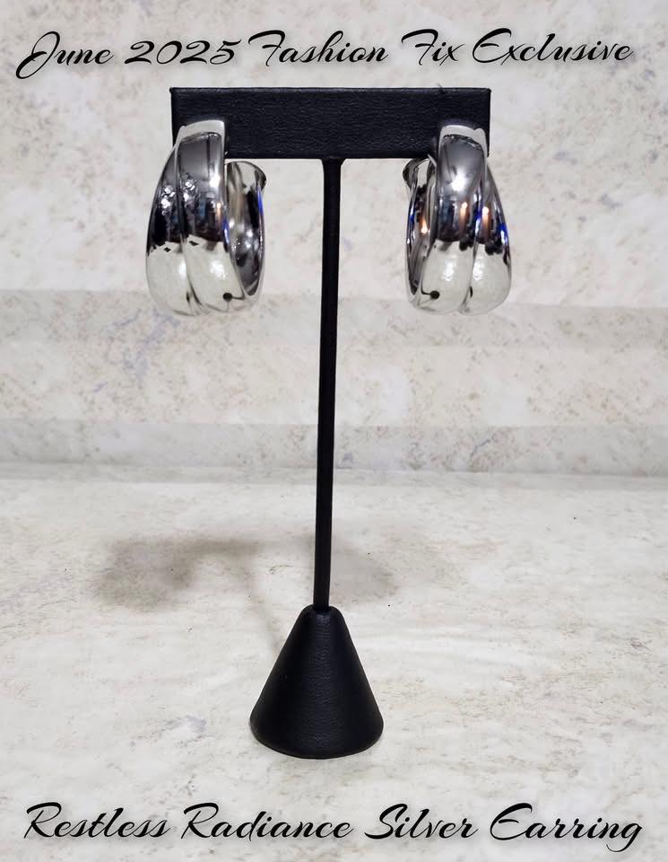 Polished silver hoops are artfully twisted into a bold, layered design, creating a striking statement piece. The sleek and reflective surface enhances the contemporary aesthetic, adding a modern look to any outfit. Earring attaches to a standard post fitting. Hoop measures approximately 1 3/4" in diameter.